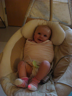 Lucy in her swing (they let us bring it to the hospital) - notice her red "rudolph" toe through her sock (another monitor)